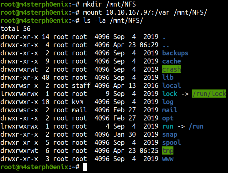 We copied id_rsa to /var/tmp because we know that we have access to /var, and can mount it onto our system. Mount /var using the following commands: