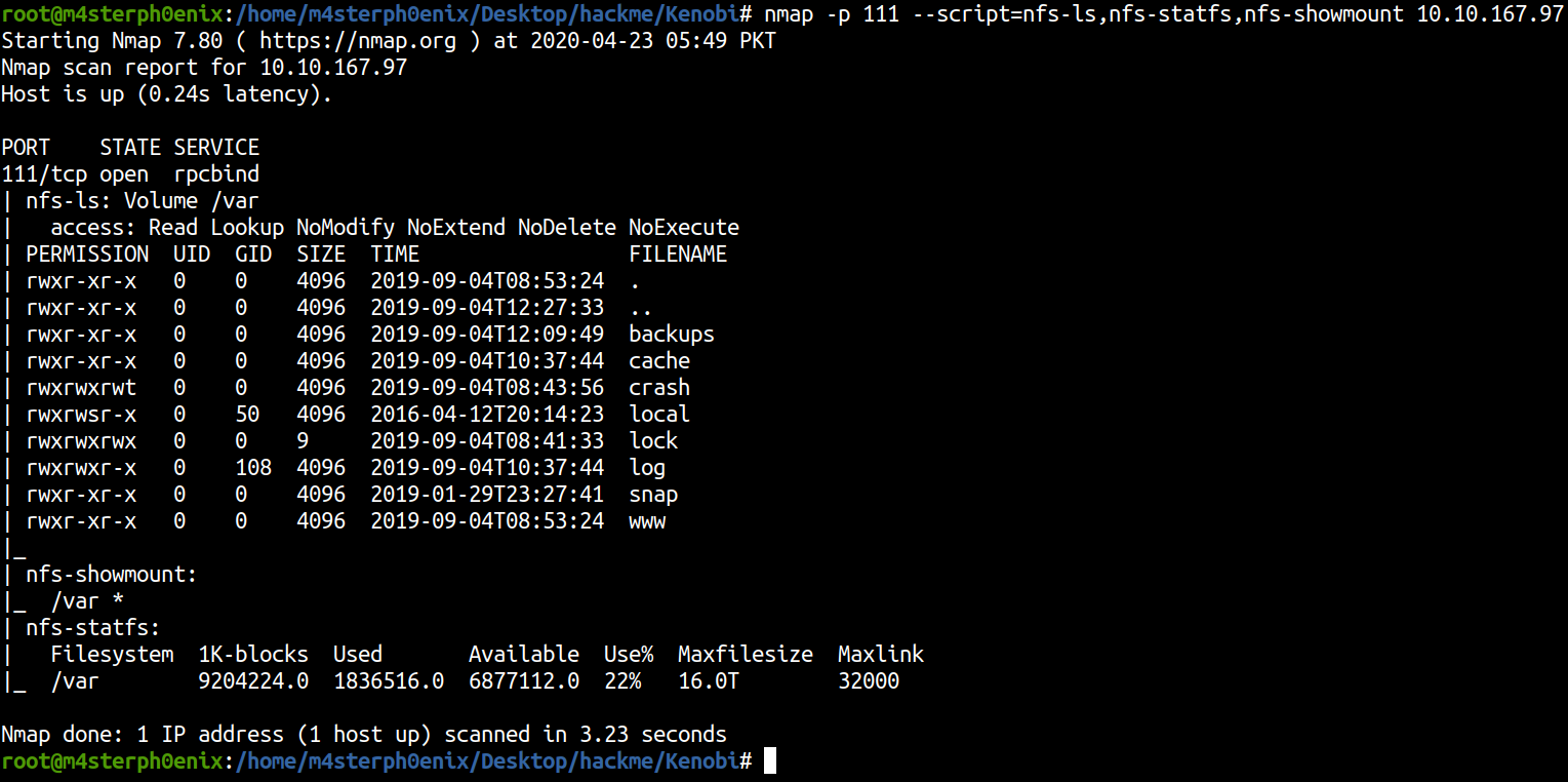nmap -p 111 --script=nfs-ls,nfs-statfs,nfs-showmount 10.10.167.97