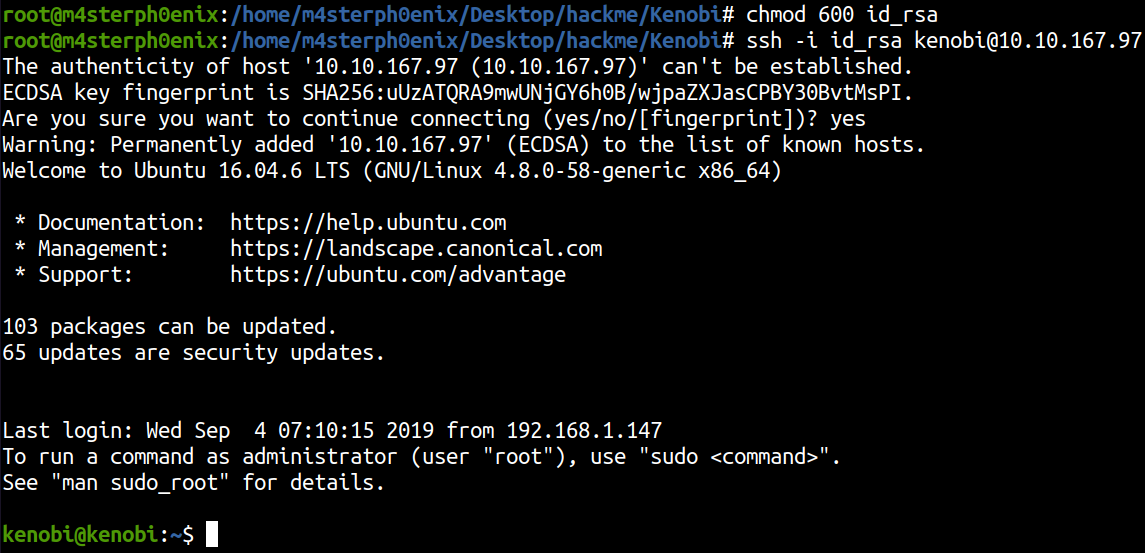 So we’ve now moved Kenobi’s private key to the /var/tmp directory.