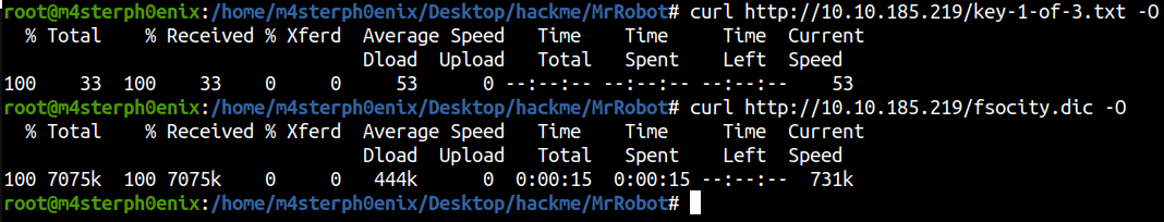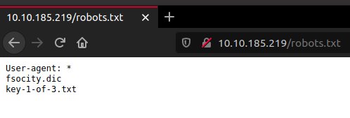 key-1-of-3.txt contains a flag key and fsocity.dic is a wordlist.