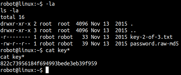 -r-------- 1 robot robot 33 Nov 13 2015 key-2-of-3.txt