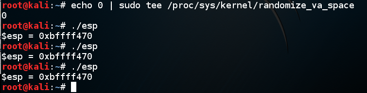 Fortunately, it’s easy to temporarily disable ASLR in Kali Linux.
