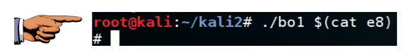 Note: the “$(cat e1)” portion of this command prints out the contents of the e1 file and feeds it to the program as a command-line argument. A more common way to do the same thing is with the input redirection operator: “./bo1 < e1”. However, that technique gave different results in the command-line and the debugger, so the $() construction is better for this project.