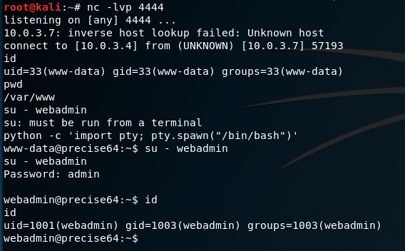 I watched Phineas Fisher use this technique in his hacking video, and it feels like magic. Basically it is possible to use a dumb netcat shell to upgrade to a full TTY by setting some “stty” options within your Kali terminal.